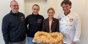 Vertreterinnen und Vertreter der Bäcker-Innung Rhein-Ruhr hat am Donnerstagvormittag, 15. Januar 2026, das Kreishaus besucht und Landrätin Dr. Bettina Warnecke eine traditionelle Neujahrsbrezel überreicht. Mit dem Besuch verband die Innung ihre Wünsche für Glück und Gesundheit im neuen Jahr sowie einen fachlichen Austausch. Landrätin Warnecke unterstrich dabei die Bedeutung des Handwerks für die Region: „Viele Bürgerinnen und Bürger