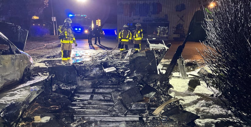 Am späten Sonntagabend (7. Dezember 2025) hörte ein Anwohner der Schöneberger Straße gegen 23:15 einen lauten Knall. Als er nach dem Rechten schaute, stellte er fest, dass ein auf Höhe der Hausnummer 1 abgestelltes Wohnmobil brannte und die Flammen schon auf einen daneben geparkten VW Caddy übergriffen. Der Mann alarmierte umgehend die Feuerwehr, die zwar schnell vor Ort war, jedoch nicht verhindern konnte, dass beide Fahrzeuge vollständig abbrannten. Die ebenfalls alarmierte Polizei fahndete im Umfeld nach möglichen Brandverursachern, konnte jedoch keine verdächtigen Personen antreffen. Die genaue Brandursache ist nach ersten Ermittlungen noch unklar – die Polizei geht jedoch derzeit davon aus, dass der Brand vorsätzlich gelegt wurde.