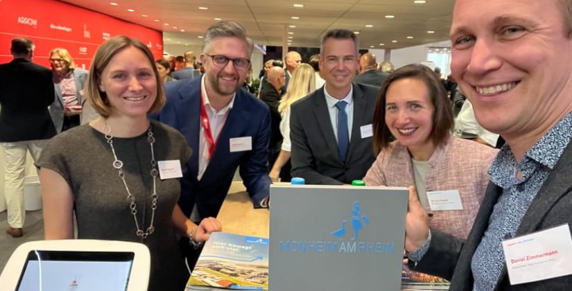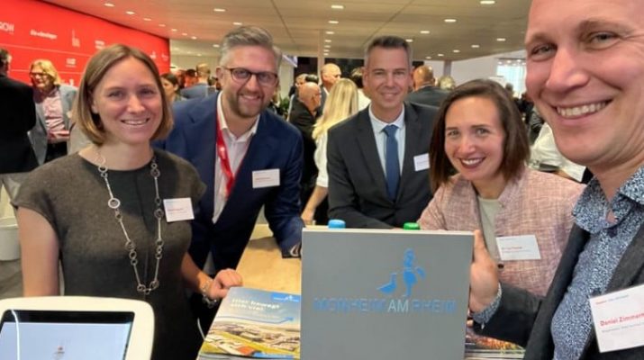 Die Delegation rund um den scheidenden Bürgermeister Daniel Zimmermann, die Erste Beigeordnete Lisa Pientak, SEG-Geschäftsführerin Estelle Dageroth sowie die Wirtschaftsförderer Julian Brigmann und Thomas Zitzmann nutzte die Messe, um Monheims Standortvorteile gezielt an Investoren, Projektentwickler und Unternehmensberater zu vermitteln.
