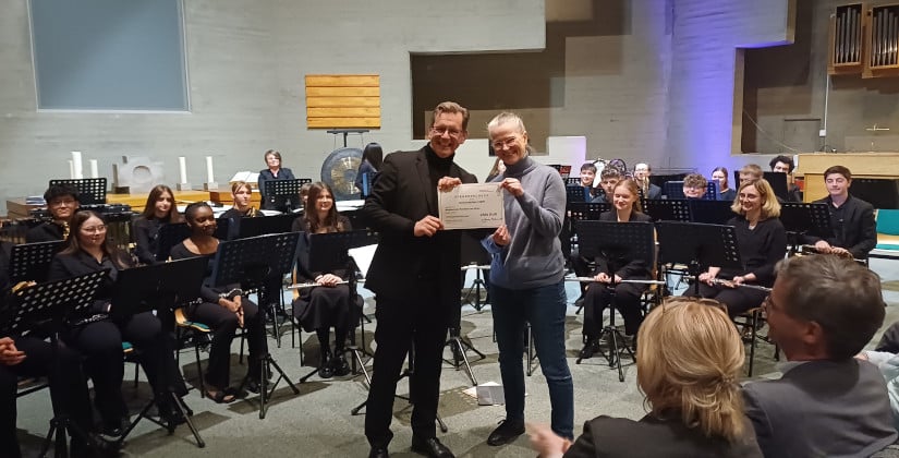 Das Jugendblasorchester der Musikschule Monheim spielt nicht nur in der Frienskirche Ihr Programm, sondern tritt ungefähr zehn bis zwöl Mal pro Jahr auf. Ein besonderes Highlight im Jahr ist die Orchesterfahrt. Dieses Jahr geht es wieder nach Vogelsang, der berühmten Anlage mit Jugenherberge in Schleiden oberhalb des Rursees. Als Unterstützung gab es von Ulrike Hesse-Berhrendt, der Vorsitzenden des Fördervereins der Musikschule, einen Scheck über 4500 €.
