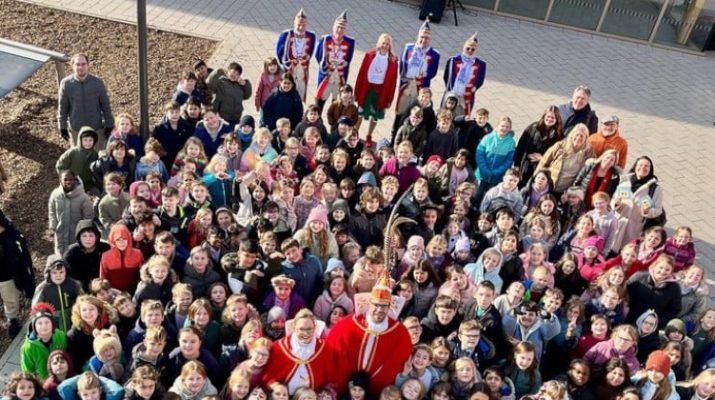 Prinzessin Christina Kraudelt und Prinz René Lütz sorgten gemeinsam mit Vertreterinnen und Vertretern der Stadt für Freude. Im Mittelpunkt stand jedoch nicht nur der Karneval, sondern das neue Kinderheft „Jimmi und Lori feiern Karneval“. Es wurde an die Schülerinnen und Schüler übergeben und begleitet sie altersgerecht durch typische Karnevalssituationen.