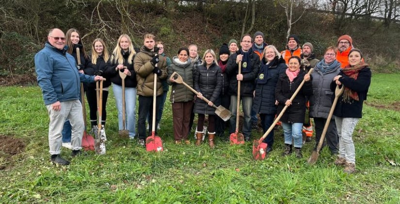 Der Monheimer Klimawald ist um neun junge Apfelbäume gewachsen und erneut ein Stück lebendiger geworden. Bürgermeisterin Sonja Wienecke, die zum ersten Mal selbst mitpflanzte, sprach von „einem großen Baustein für die Zukunft“ und dankte allen, die das Projekt seit Jahren verlässlich voranbringen.