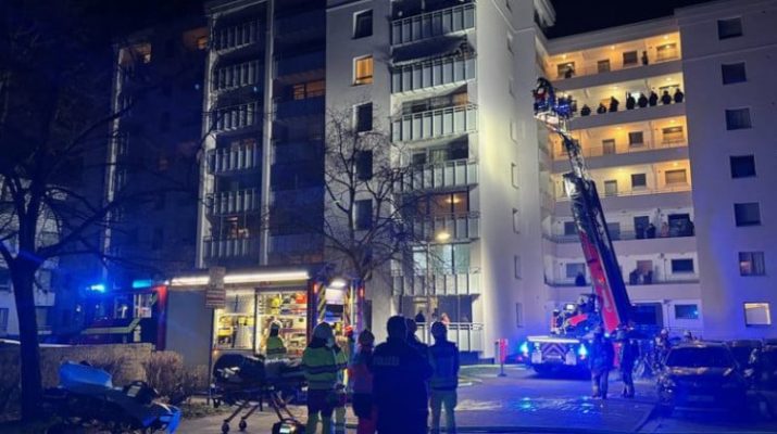 Dichter Rauch hatte sich im gesamten Gebäude ausgebreitet. In allen Geschossen machten Bewohnerinnen und Bewohner an Fenstern und auf Balkonen auf sich aufmerksam. Der Bewohner der Brandwohnung konnte sich selbstständig ins Freie retten und erlitt lediglich leichte Verletzungen. Aufgrund der unübersichtlichen Lage in dem achtgeschossigen Wohngebäude wurde die Alarmstufe erhöht und ein zweites Einsatzfahrzeug mit Drehleiter aus Langenfeld nachalarmiert.